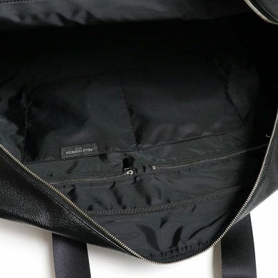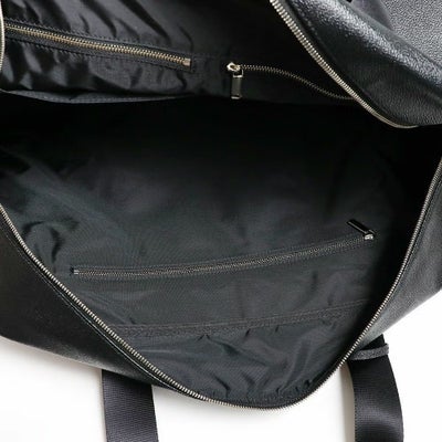 メイン素材にはシャープな型押しを施したPVC素材を使用。上質な雰囲気はさることながら、軽量かつ手入れもしやすい素材で利便性が高いです。内装にはファスナー付きポケットが1つと小物用のポケットが2つ備わっており、スマートフォンやメモ帳などの収納に便利です。