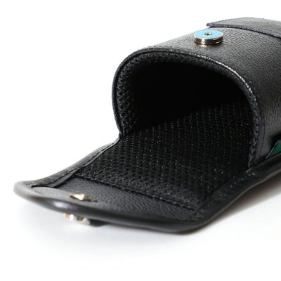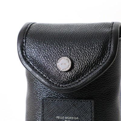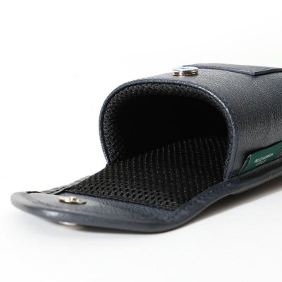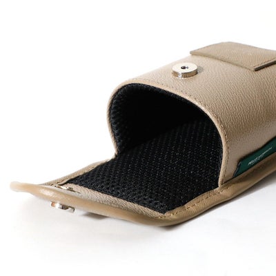 PELLE MORBIDAらしい上品なデザインのスコープケース。シンプルでいて遊び心を忘れない大人のゴルフコーディネートにぴったりです。背胴面にはナスカンとホックが付いているので、ベルトループやバッグ、もちろんベルト自体にも装着できます。本体のPVC素材には撥水性が備わっています。