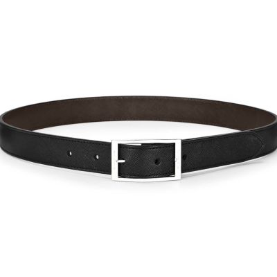 表面をブラック、裏面をダークブラウンで仕上げたリバーシブルデザイン。スーツや靴の色に合わせて使い分けできます。サイズは4サイズで展開しております。(カット不可)
