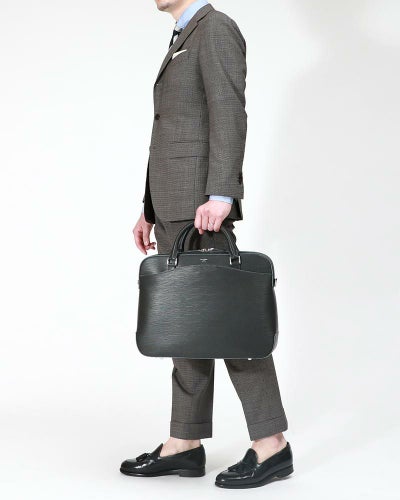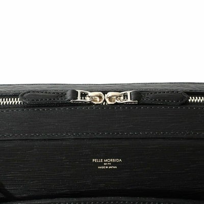 ビジネスシーンで活躍するブリーフも、スタイルによって選びたいもの。このブリーフバッグは、正面にはマグネットボタンがついたポケットが、背面にはスーツケースに差し込めるスリーブがついた機能的なアイテム。ペッレモルビダ らしいシンプルな曲線がデザインのポイントです。
