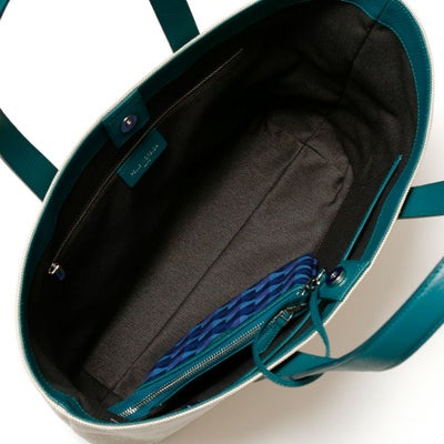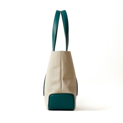 • トートバッグの正面(ピーコックグリーン)