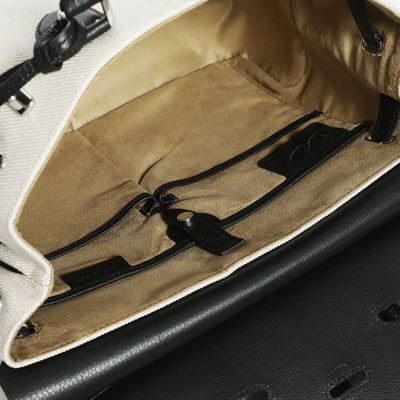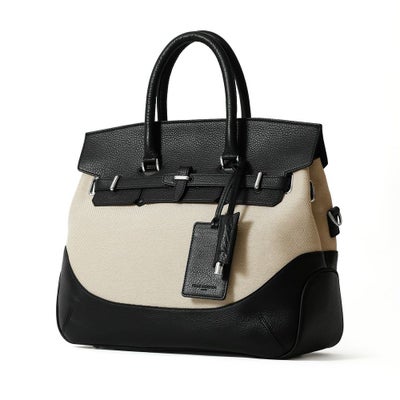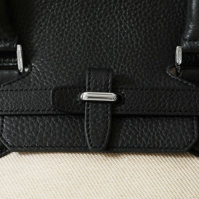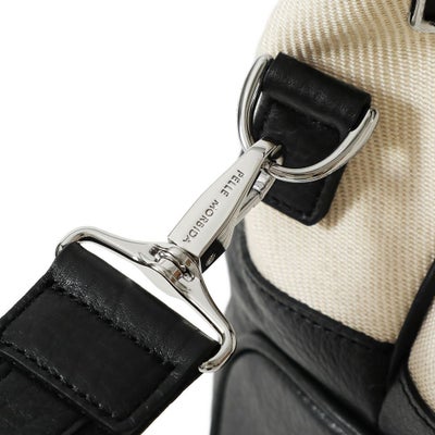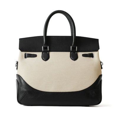 • フラップボストンバッグの正面(ブラック&リネン)