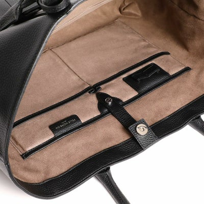 旅行にも出張にも便利なビッグトートバッグはマグネットボタン付きのオープン式で開閉しやすい仕様。