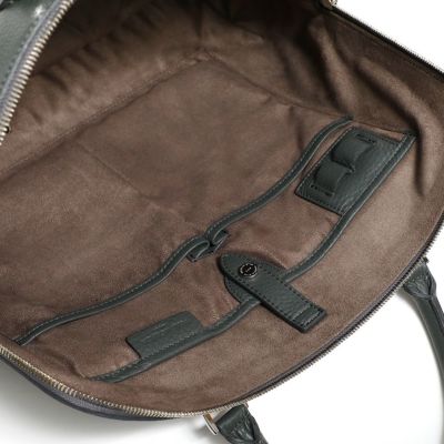 ビジネスシーンで活躍するブリーフも、スタイルによって選びたいもの。このブリーフバッグはハンドルに近くなるにつれてマチが薄くなり、よりスタイリッシュに楽しめるデザインになっています。大人の男ならではのスーツスタイルはもちろん、ジャケパンスタイルでも上級者のお洒落を演出。オリジナルで起こしたブランドネーム刻印入りの金具がキラリと全体を引き締めます。