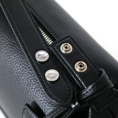 コンパクトな見た目ながらボックス型で十分な容量が入るハンドルバッグ。ドライブや荷物を持たないお出かけにちょうどいいサイズ。財布・携帯・キーケースなど必要最低限な小物が入ります。ハンドル部分はドットボタンで取り外し可能なので荷物の取りやすさも快適。