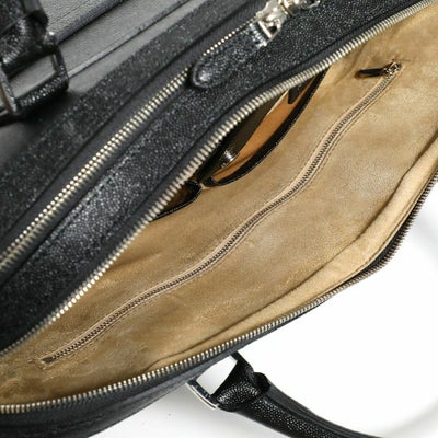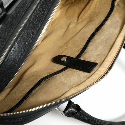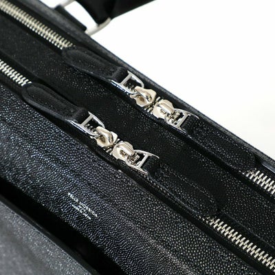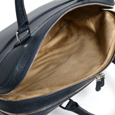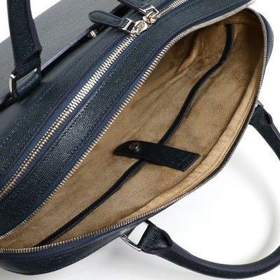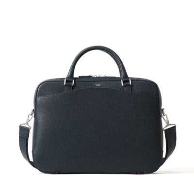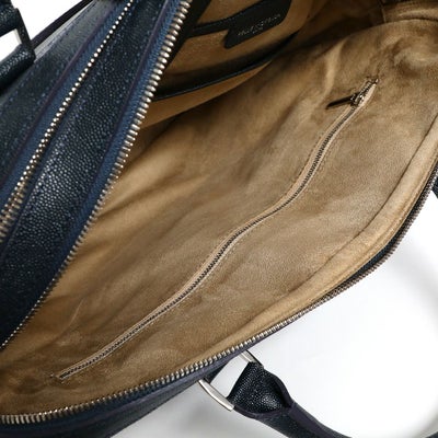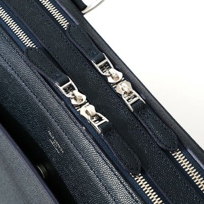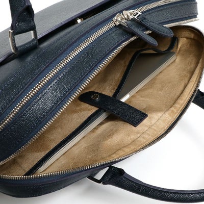 レザーに撥水加工を施した新素材のレザーバッグ。人気のブリーフバッグで直営店限定モデルとして登場。キャビアスキンの光沢感ある上品な表情が、大人の余裕を演出します。
