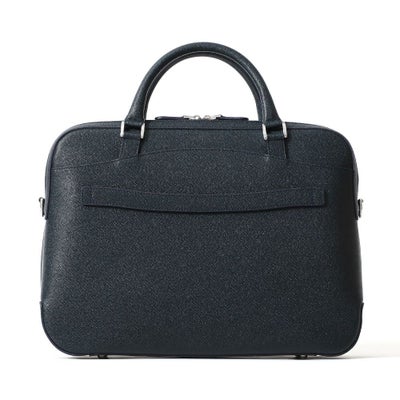 ビジネスシーンで活躍するブリーフも、スタイルによって選びたいもの。このブリーフバッグは、正面にはマグネットボタンがついたポケットが、背面にはスーツケースに差し込めるスリーブがついた機能的なアイテム。2室に分かれているので、出張にも便利です。ペッレモルビダらしいシンプルな曲線がデザインのポイントです。