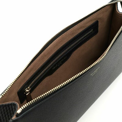 マチにメッシュレザーをあしらい、ちょっとした個性が光るエレガンスなデザインです。オフスタイルは勿論、結婚式などのパーティースタイルにもおすすめのクラッチバッグです。