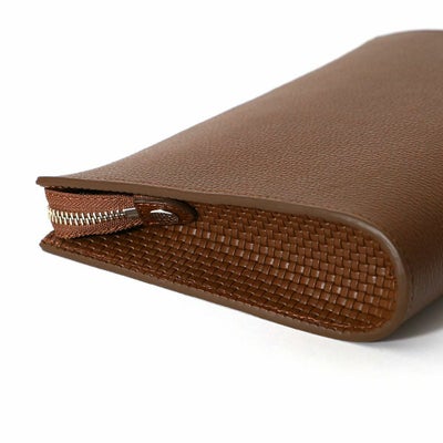 本体にはハイブランドにも提供し、定評のあるイタリアのオーヴァーロード社製レザーを使用。型押し後のミーリング加工により、革全体に柔らかさと膨らみを出しています。また細やかなシュリンク風に仕上げることで繊細で優しい佇まいの雰囲気に。さらにセミアニリン仕上げをすることで、色の均等性を保ちしっとりとした手触りの良さを実現しております。ハンドル部分にはメッシュの型押しレザーを使用。イタリアから輸入した薬剤を使用しクローム鞣しによりしなやかで自然な風合いに。使い込むことにより手に馴染んでいく経年変化を楽しめる仕様です。国内唯一LWG加盟タンナーによって生産されております。