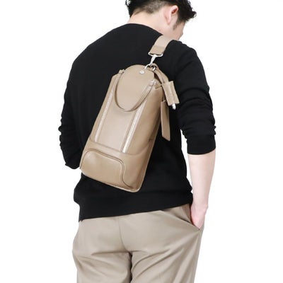 休日などちょっとしたお出かけに持っていけるバッグには様々なスタイルがあるもの。この縦型ボディバッグは、荷物をコンパクトにまとめて持ち運べる優れもの。シュリンクレザーで贅沢に仕上げているので、カジュアルになりすぎない風格を残します。大人のスポーティースタイルに持ちたいアイテムです。