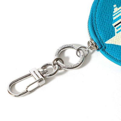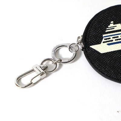 PELLE MORBIDAの船ロゴがアイコニックなコインケース。型押しレザーに細かいプリントをするのことが難しいとされている中、長年培ったプリント技術により作ることが可能となったアイテムです。引手部分のナスカンはバッグチャームとしてもキーチャームとしても使用できます。