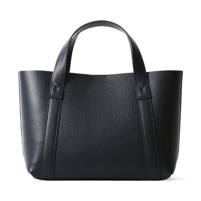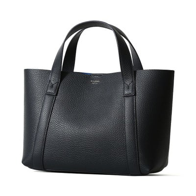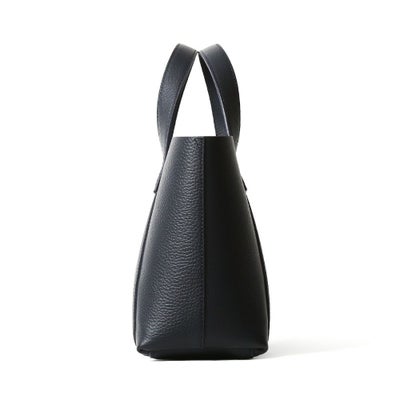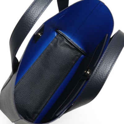 直営店舗限定で展開中のミニトートバッグ。人気のミニトートバッグをベースに、外側はネイビー、内側はブルーで仕上げたダブルフェイスレザーを使用しました。今までのバリエーションにありそうでなかった特別なアイテムです。