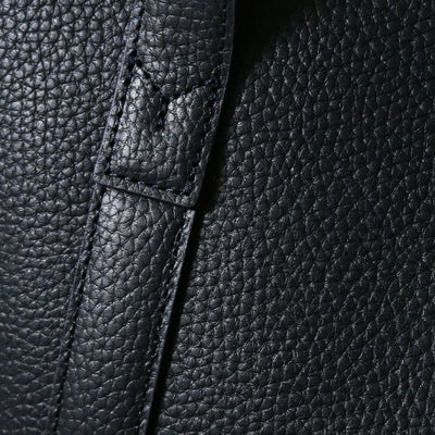 一枚仕立てのダブルフェイスレザーは裏地、芯地をほぼ使わず柔らかな仕上がりに。皮革生産地である姫路松原地区の牛革に、細やかなシボ型を押した上質なシュリンク風レザーに仕上がりました。