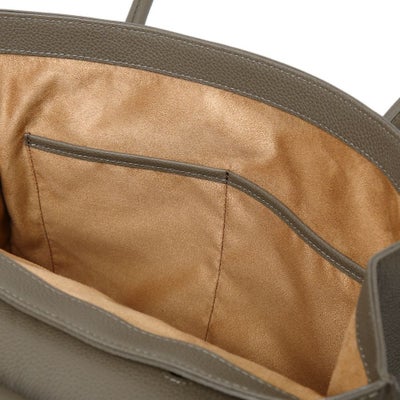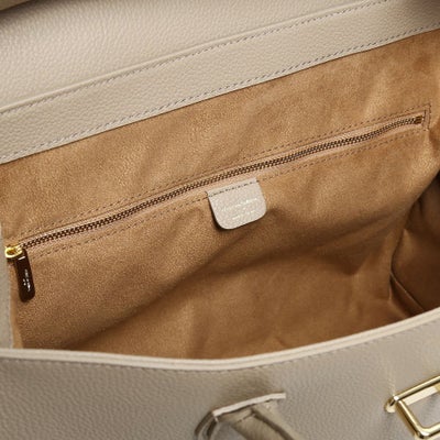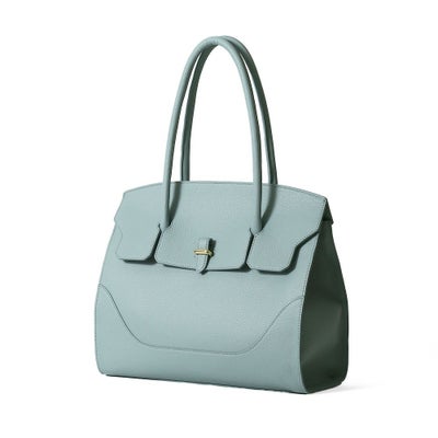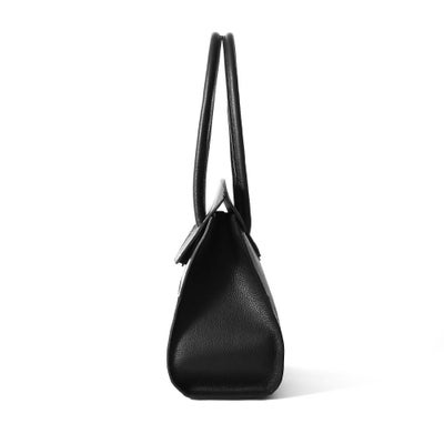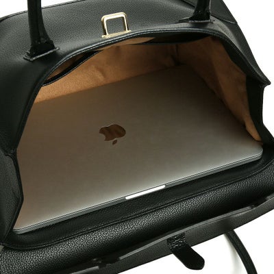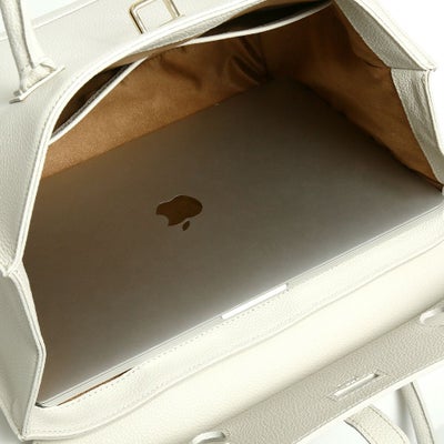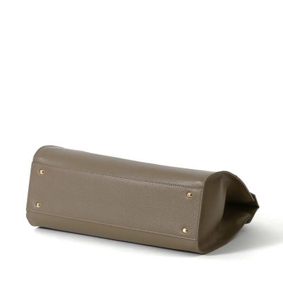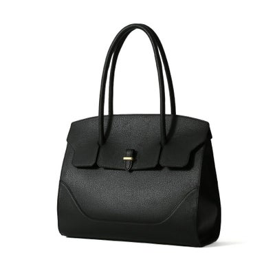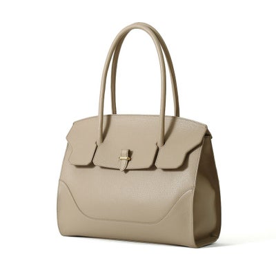 フラップ式の開口部と、そのサイズ感から気品漂う大人の女性のためのバッグ。A4サイズでしっかりとボリュームがあり、ビジネスでも活躍するトートバッグです。