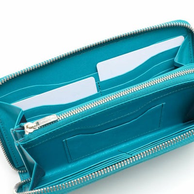• ラウンドジップウォレット(サックスの正面)