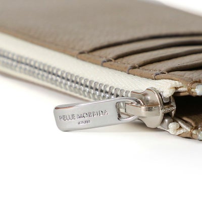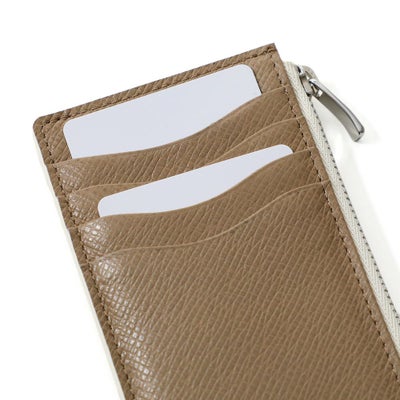 シンプルなデザインながらコバとファスナーテープをバイカラーにし、さりげなくお洒落さを演出したミニウォレット。コインケース部分にササマチを加えることでより使いやすくしています。マチは薄く仕上げているので、ジャケットのポケットに入れてもきれいなシルエットを保ってくれます。お札、カード、小銭を一つにまとめながら、すっきりしたデザインなのでバッグのサブポケットなどにもスマートに収納できる仕様です。