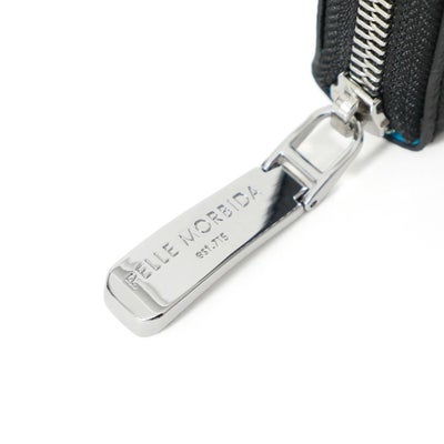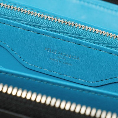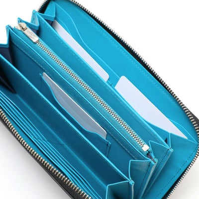 • ラウンドジップウォレットの正面(ブラック×サックス)