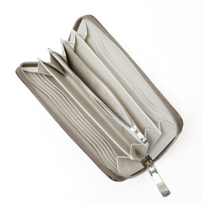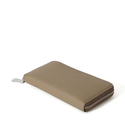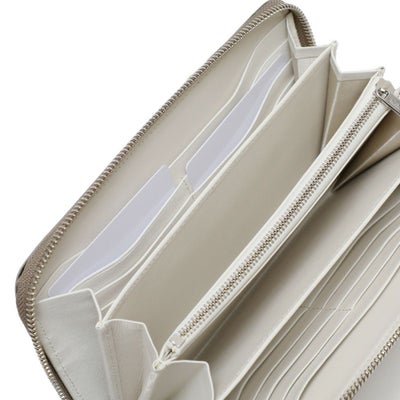 • ラウンドジップウォレットの正面(グレージュ×ホワイト)