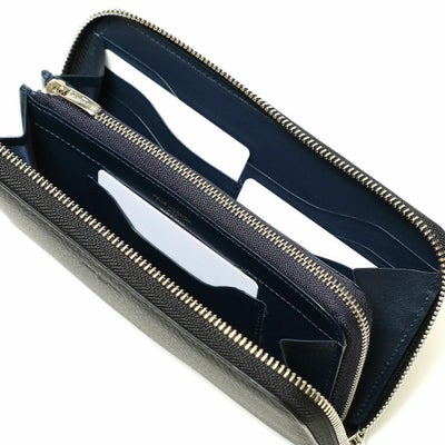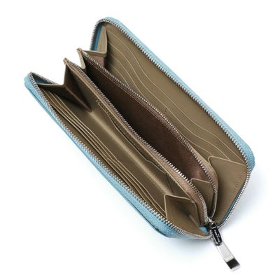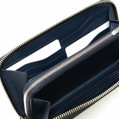 人気定番のラウンドジップ型のウォレット。お札、小銭、カード、レシートなどたっぷり収納したい方におすすめのデザイン。見た目はシンプルで上品ながら大収納なのがポイント。ラウンドジップでぐるりと180度開閉できるのも使いやすさのひとつ。カードも12枚としっかりと収納できます。