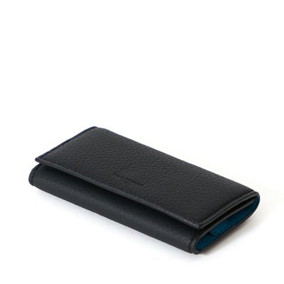 定番の3つ折りタイプのキーケース。3連のキーフックと着脱可能なキーリングを設け、日常使用する鍵が収まるデザインです。両サイドにカートポケット設け、普段使用したいICカードやETCカードなどを常備することも可能。ジャケットのポケットにも収まりやすいすっきりとしたサイズ感です。