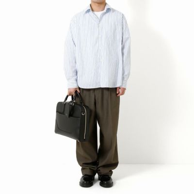 牛革に水シボ柄の型押しを施した、傷が目立ちにくいレザーを使用。ペッレモルビダらしいやわらかな風合いを保ちつつある程度の自立性を持っています。表面の凸の部分には、一つ一つ手作業で”頭張り”と呼ばれる色付け作業をし、同系色で2トーンのように見える表情が生まれています。光によって微細に変わる美しい発色が大人の色気を演出する素材です。内装はマイクロライトスエードで心地よい肌触りに。スーパーホワイト加工によって輝く金具がアクセントになっています。