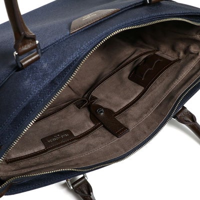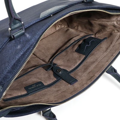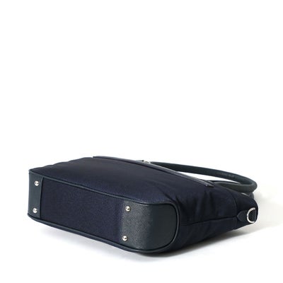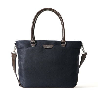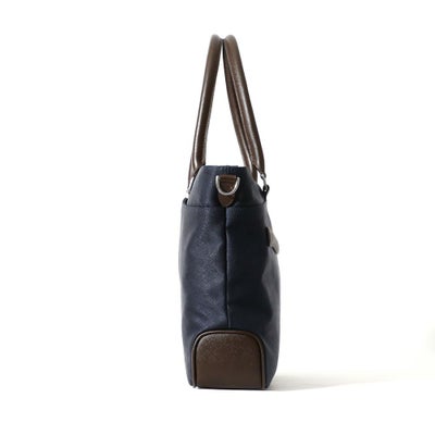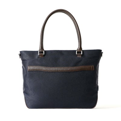 • トートバッグの正面(ネイビー×ダークブラウン)
