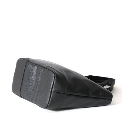 メイン素材にはシャープな型押しを施したPVC素材を使用。上質な雰囲気はさることながら、軽量かつ手入れもしやすい素材で利便性が高いです。内装にはファスナー付きポケットが1つと小物用のポケットが2つ備わっており、スマートフォンやメモ帳などの収納に便利です。