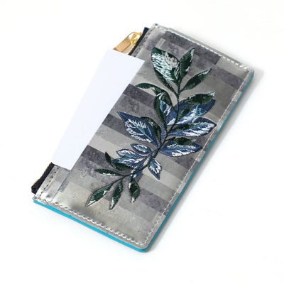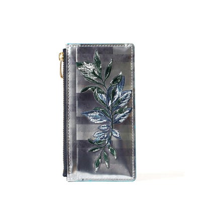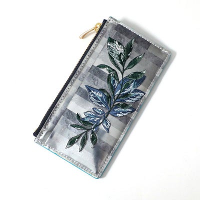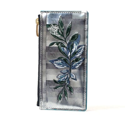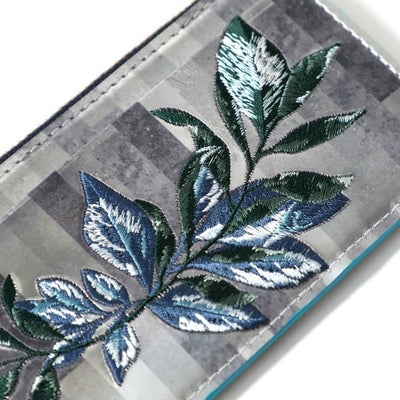 シンプルなデザインにシーズンテーマの刺繍柄を施したミニウォレット。コインケース部分にササマチを加えることでより使いやすくしています。マチは薄く仕上げているので、ジャケットのポケットに入れてもきれいなシルエットを保ってくれます。お札、カード、小銭を一つにまとめながら、すっきりしたデザインなのでバッグのサブポケットなどにもスマートに収納できる仕様です。