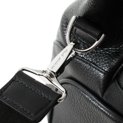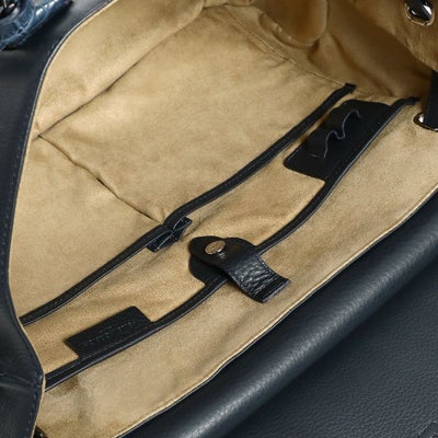 コンパートメントされたポケットやペン差しなど、スッキリスマートに収納できる内装。ポケットにはウレタンが入っているのでスマホなどを入れるのにも便利です。ボトムは底びょう付きで置いて使うのも安心。正面のベルトを止めている金具は上が空いていて、外しやすくなっています。崩して持つのもまた乙です。