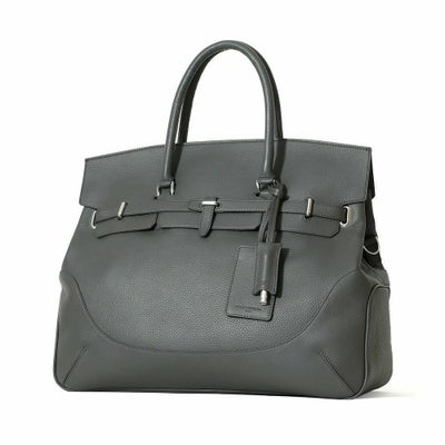 • フラップボストンバッグ(チャフラップボストンバッグ(Lサイズ)(チャコールグレーの正面)コールグレーの正面)