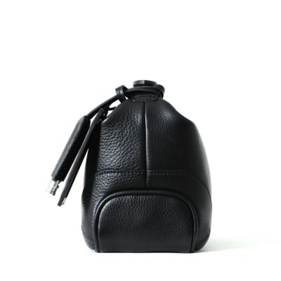 皮革生産地である姫路松原地区で開発したやわらかなシュリンクレザー。丹念に下地を鞣し、乾燥後にさらに専用のマシーンでバタ振りをすることで上品で味のあるシボ立ちを実現させました。カラーリングは下地の段階からカラーごとに芯通し(革の中まで染める)する技法で、色の魅力を最大限に引き出しています。乾燥後、軽くアイロンがけを施し、表面の艶を調整しています。日本の革職人ならではの勘と知恵と技術を駆使し、約40日かけて作られた革素材を使用しています。内装はマイクロライトスエードで心地よい肌触りに。スーパーホワイト加工によって輝く金具がアクセントになっています。