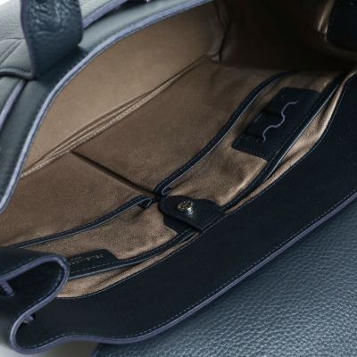 シュリンクの柔らかさを活かした、ゆったりとした安定感あるサイズ感に仕上がりました。口開きが広く物の出し入れがしやすいにも関わらず、中央のフラップにより中身が見えないため安心感のある仕様です。