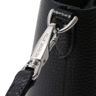 シュリンク風型押しを施したダブルフェイスレザーを本体素材に使用したデザイン。柔らかな風合いが上品な印象です。金具と刻印のカラーはレザーのカラーに応じ、グレージュとオレンジにはゴールドの金具、ブラック、チャコールグレー、ネイビー、サックスブルーにはシルバーの金具を採用しています。