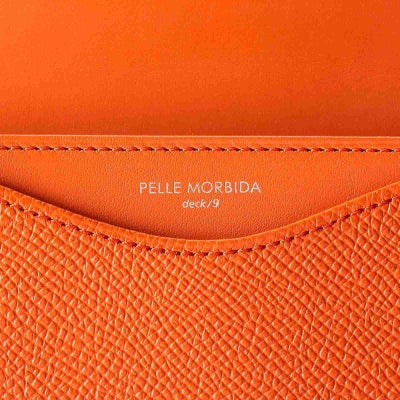 オンオフともに小物を取り出すシーンを美しく演出するペッレモルビダの最高峰シリーズ「deck/9(デッキナイン)」の名刺入れ。イタリアの伝統的なタンナーの素材を使い、美しいシルエットが際立ちます。収納力に優れた2つマチ付きのポケットに、カードを美しく収納するマチなしポケットを備え名刺を多めに持ち歩いたり、名刺交換が多い方に便利です。