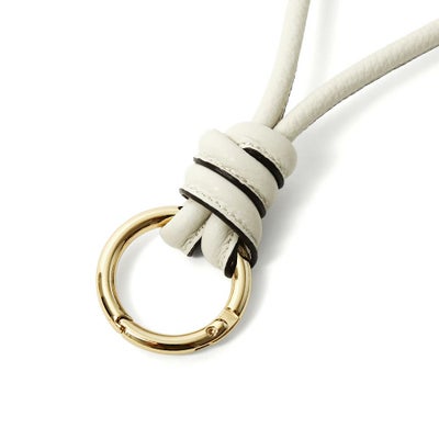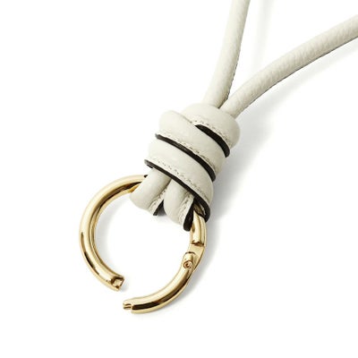 シボ感のあるレザーを用いつつ、特徴的なストラップがデザインのアクセントに。単品では勿論、お好みのバッグにチャームとして、また同コラボアイテムのスクエア型のコインパースと合わせてそれぞれ組み合わせてもお使いいただけます。