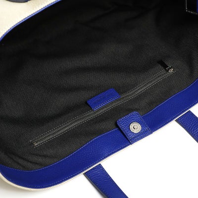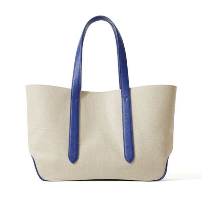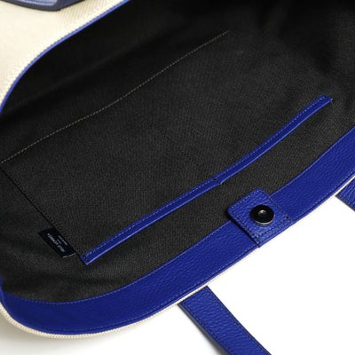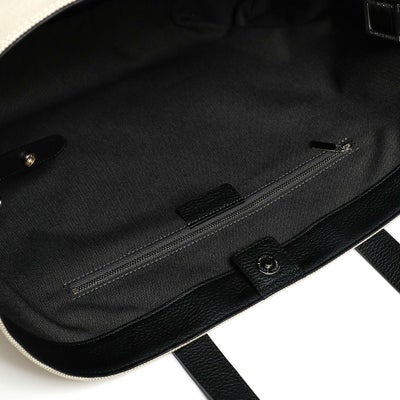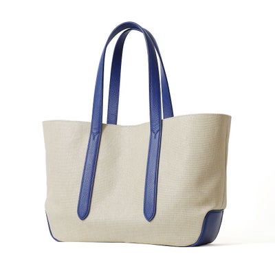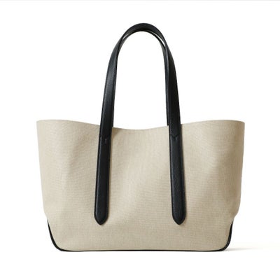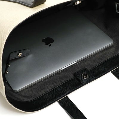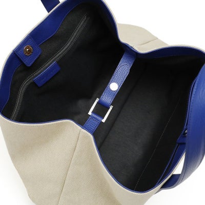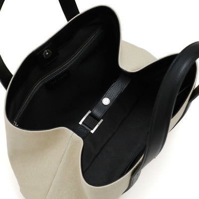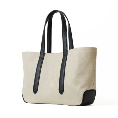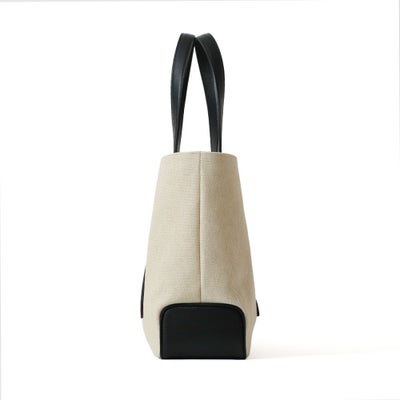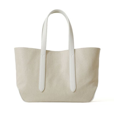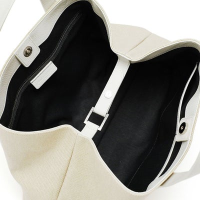 また内側のベルトを留めると台形型にチェンジ可能な2wayデザインです。ホワイトのコットンキャンバス地をベースにレザーのカラーを変化させた、オシャレ上級者のキャンバストートです。