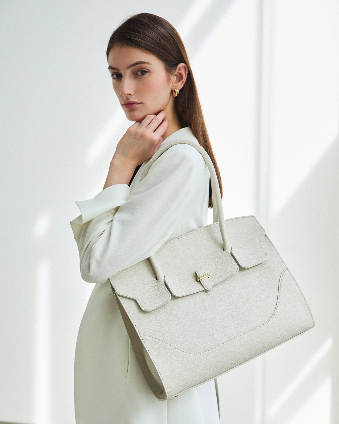 ハンドルの長さを調整し、トートバッグのように肩掛けもできるようなデザインに。