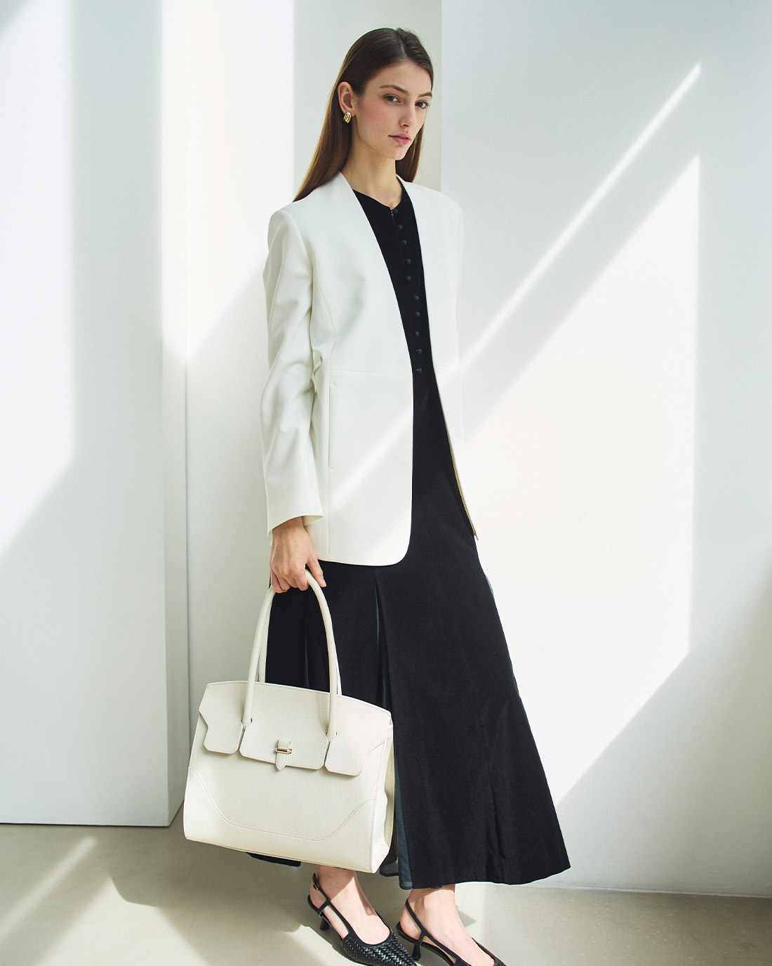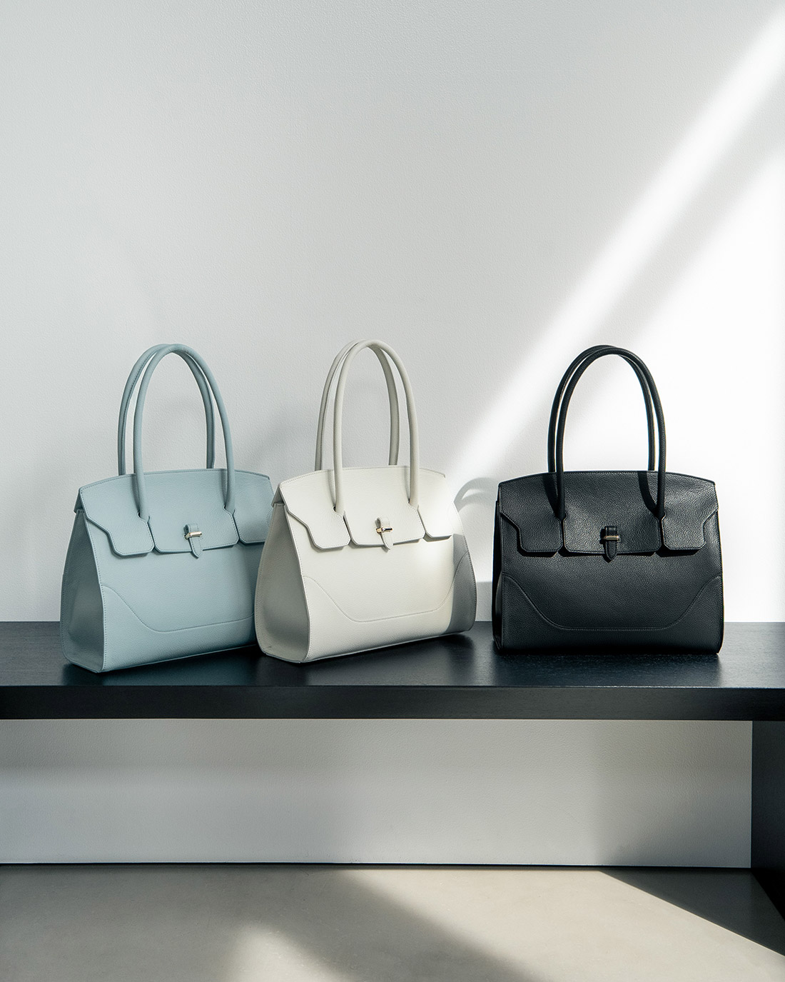 シンプルかつエレガンスなデザインはそのままに、ショルダーバッグとしても使いやすいスモールサイズ、ビジネスシーンや旅行などにも重宝するフラップトートバッグが好評販売中です。