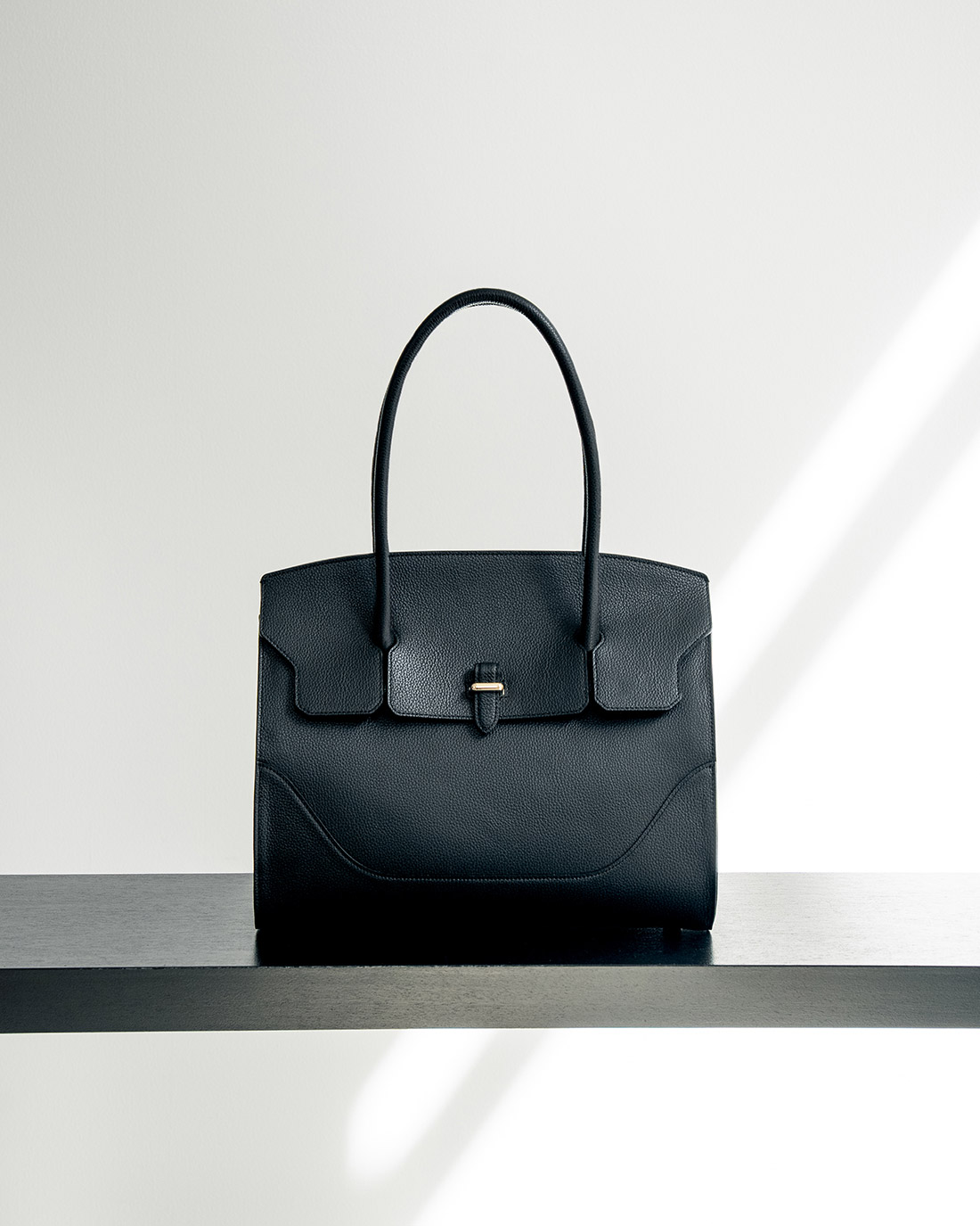 A4サイズも収納できるように、ビジネスシーンにも使いやすいフラップトートバッグ。